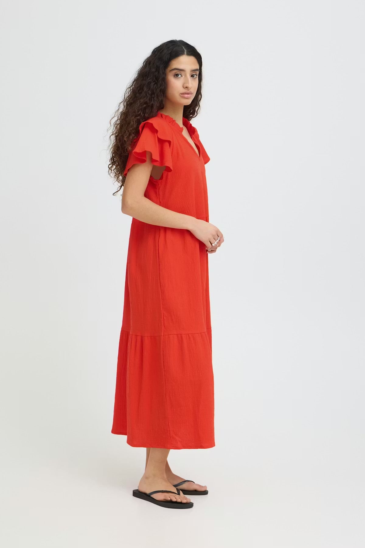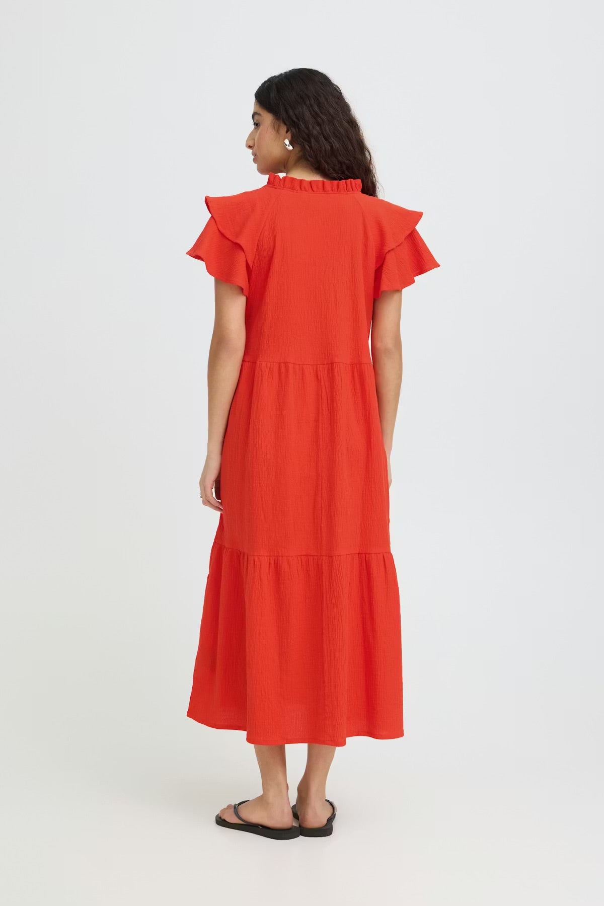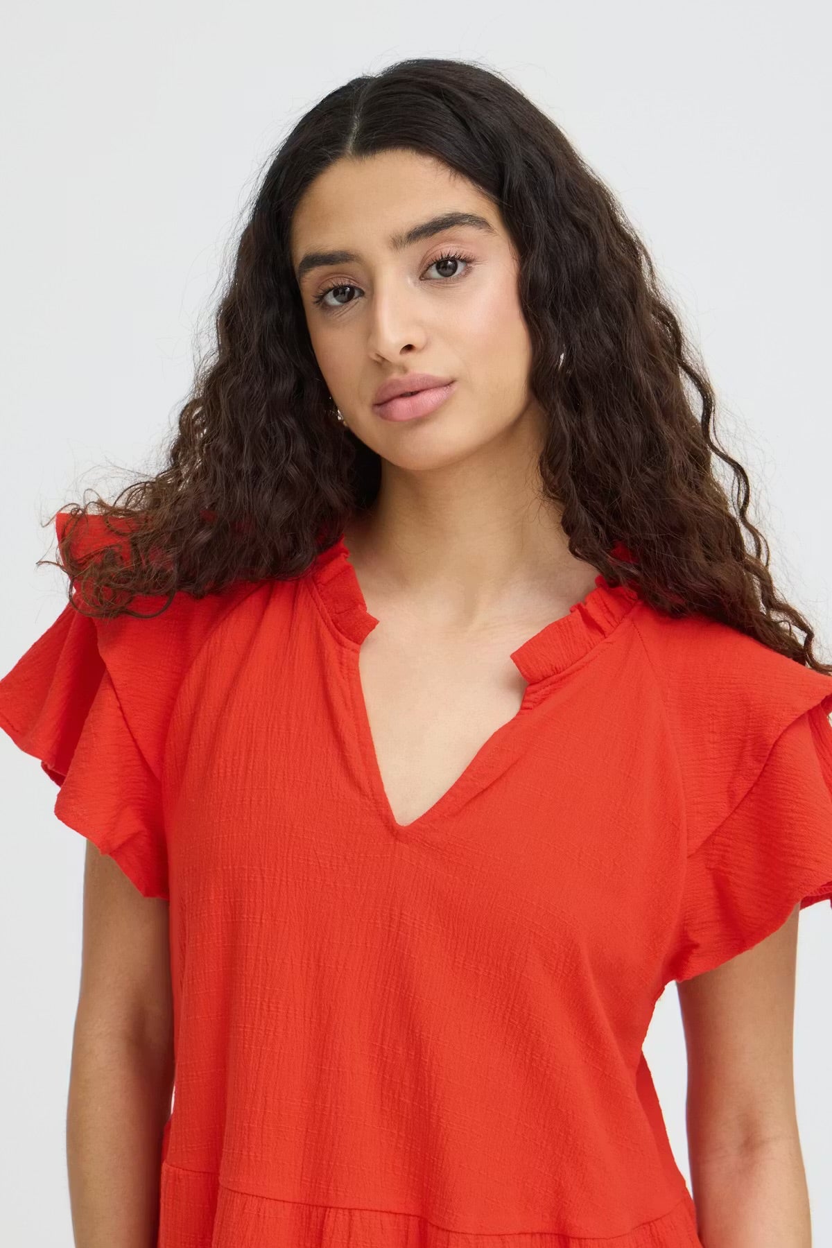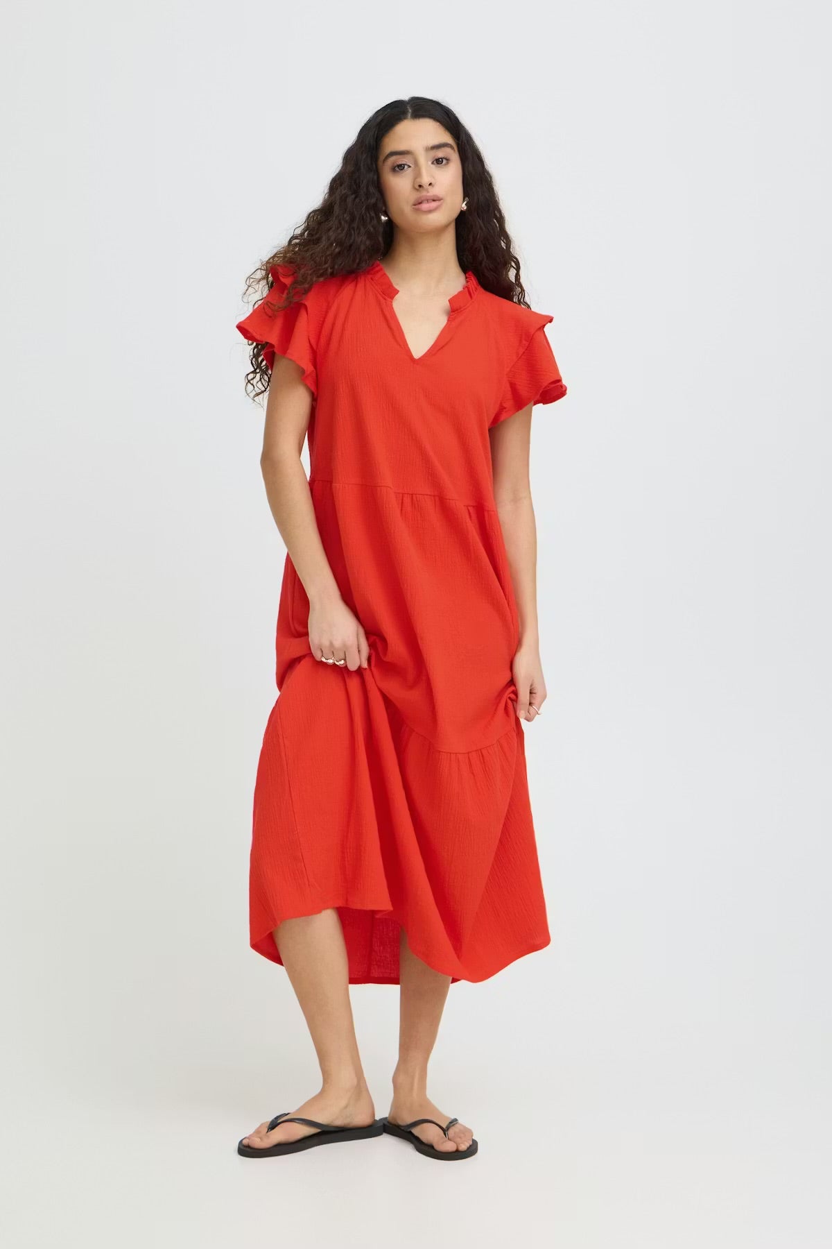 Midi dress with a soft crinkled texture, V-neckline, flutter sleeves, and a relaxed tiered silhouette. Effortlessly cool with flowing drape and a comfortable fit.
