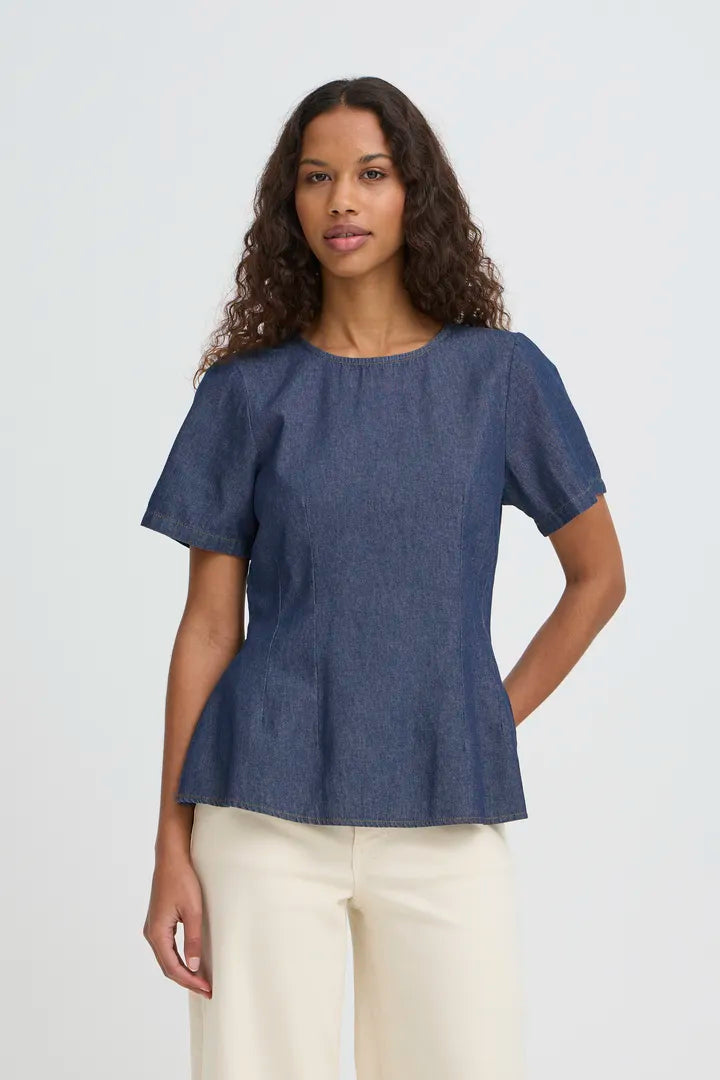 Ichi Tulle Denim Blouse