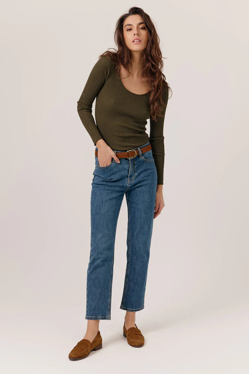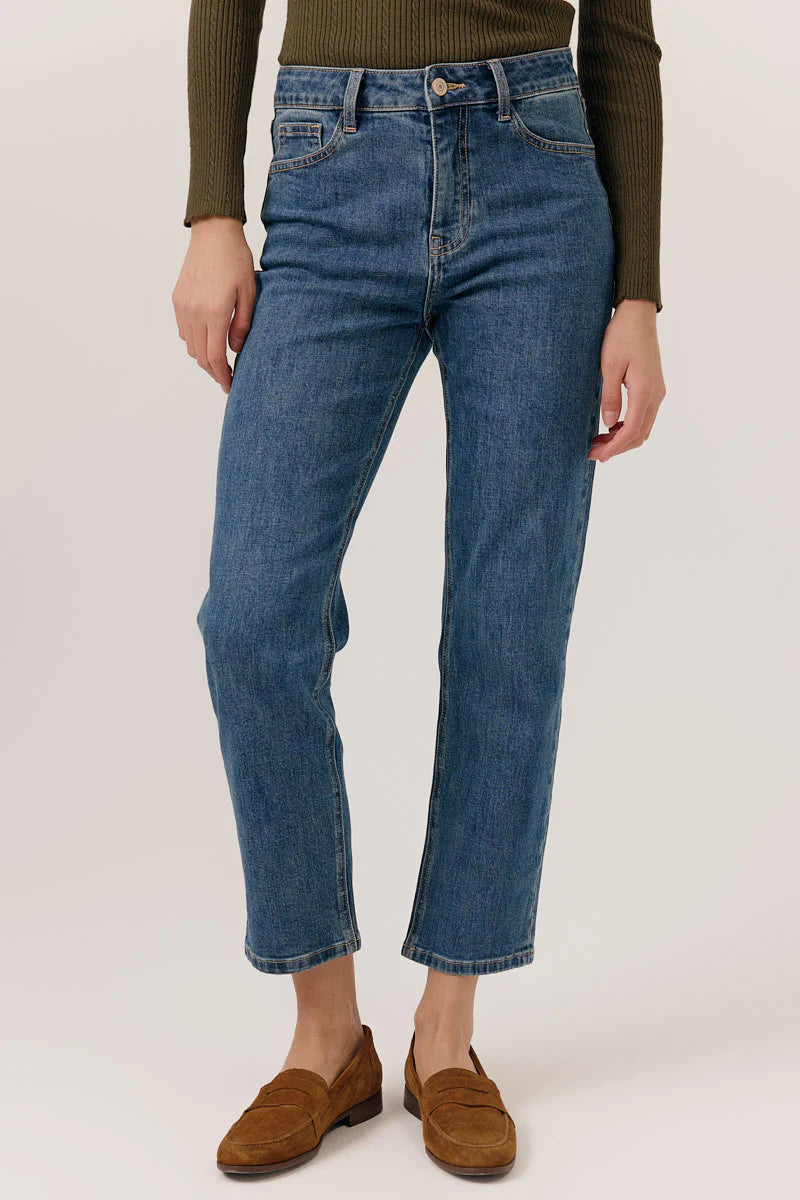 Classic straight cut jeans, high waist and slightly cropped finish for a modern silhouette and easy to wear every day.